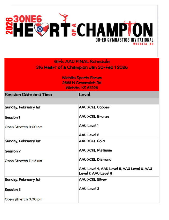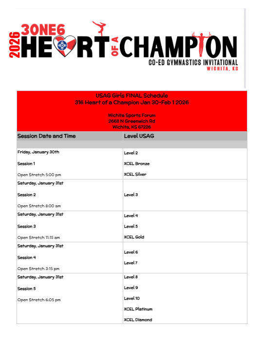 Welcome to 316 Gymnastics Heart of a Champion Co-ed Invitational!
